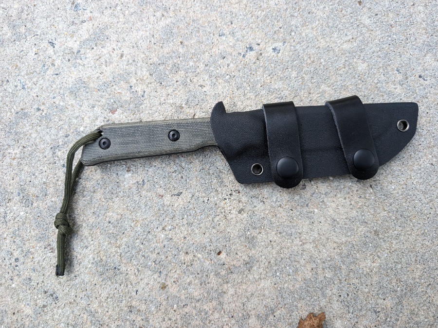 The biggest miss on this knife is the sheath. On paper, the Kydex is functional and secure, with a positive click when the knife locks in. In practice, attaching it to a belt is a pain. The carry system is designed for horizontal placement, which means you have to thread it through and wrestle with positioning every time. It never feels quick or intuitive, especially compared to Tek-Lok or other modern mounting systems.