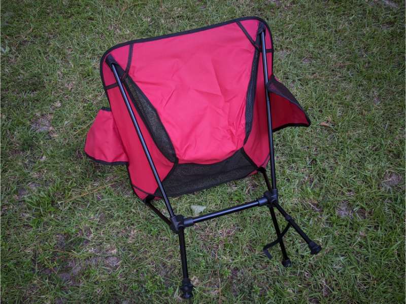 The packed weight of the Hkuddas Camping Chair is 2 pounds, while the weight of the assembled chair itself (not counting the carrying bag) is 1.8 pounds. We could quibble about the definition of words like “ultralight,” but I’d have to day the Hkuddas is light enough to pick up with one finger, which is ultralight in my book.