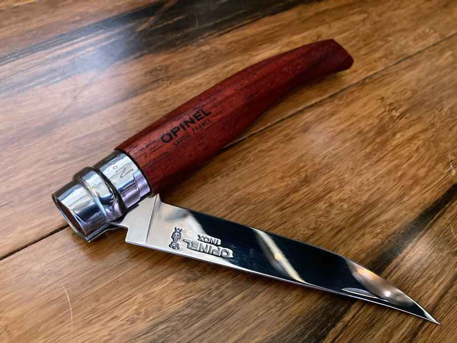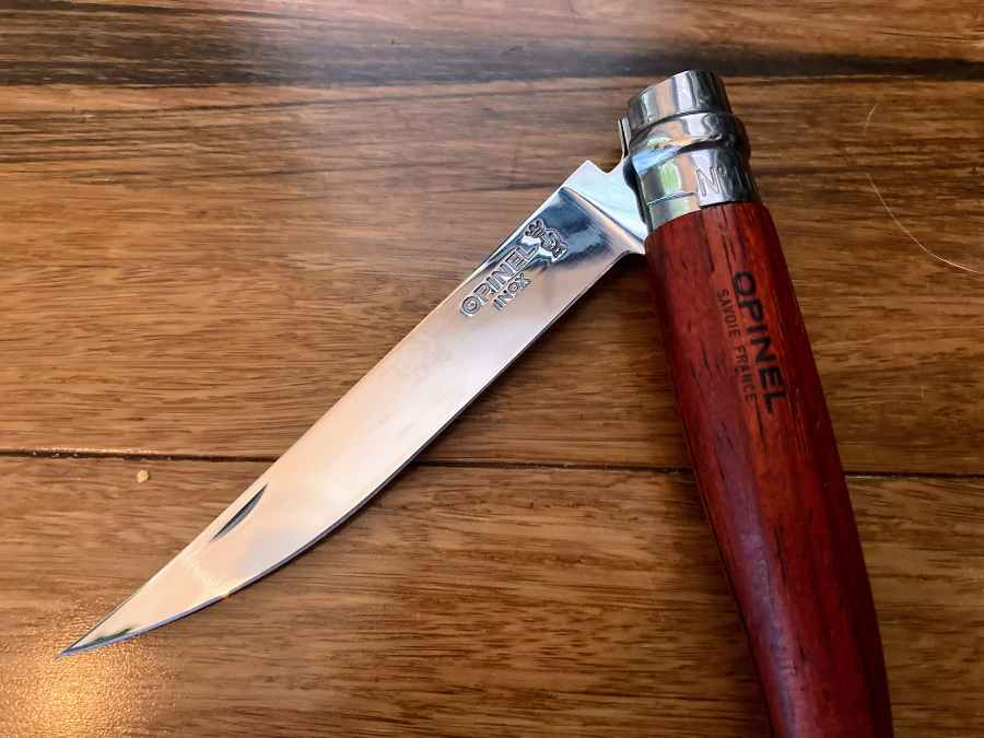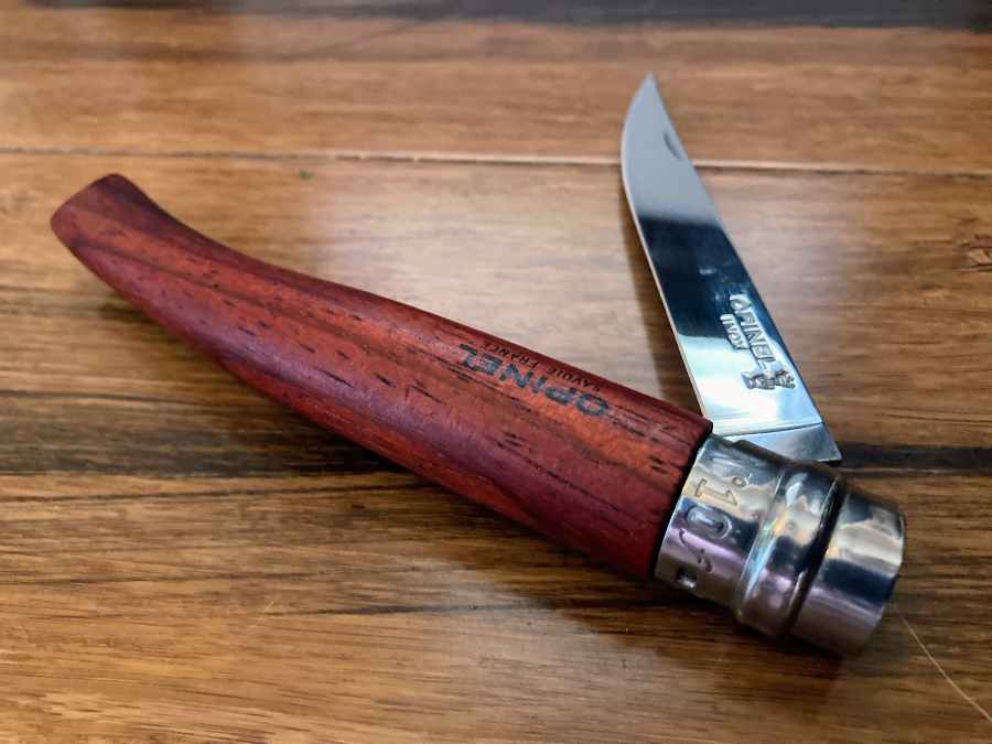 I recently picked up an Opinel No.10 Slim Series knife. It’s very similar to the original Opinel, but with some modifications that make it well-suited as a fillet knife. My old Rapala 4″ Fish’n Fillet Knife, after 20-plus years of faithful service, was beginning to show its age, so that’s exactly what I needed.