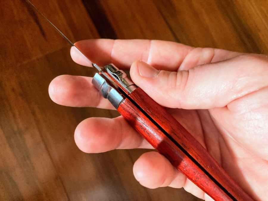The Opinel Slim Series has a collar lock, also known as a ring lock, which is one of those “it is what it is” features. Sure, there are better knife locks in the world, but the collar lock is essentially Opinel’s calling card at this point. It would be weird if it didn’t have one, and you pretty much know what you’re getting.