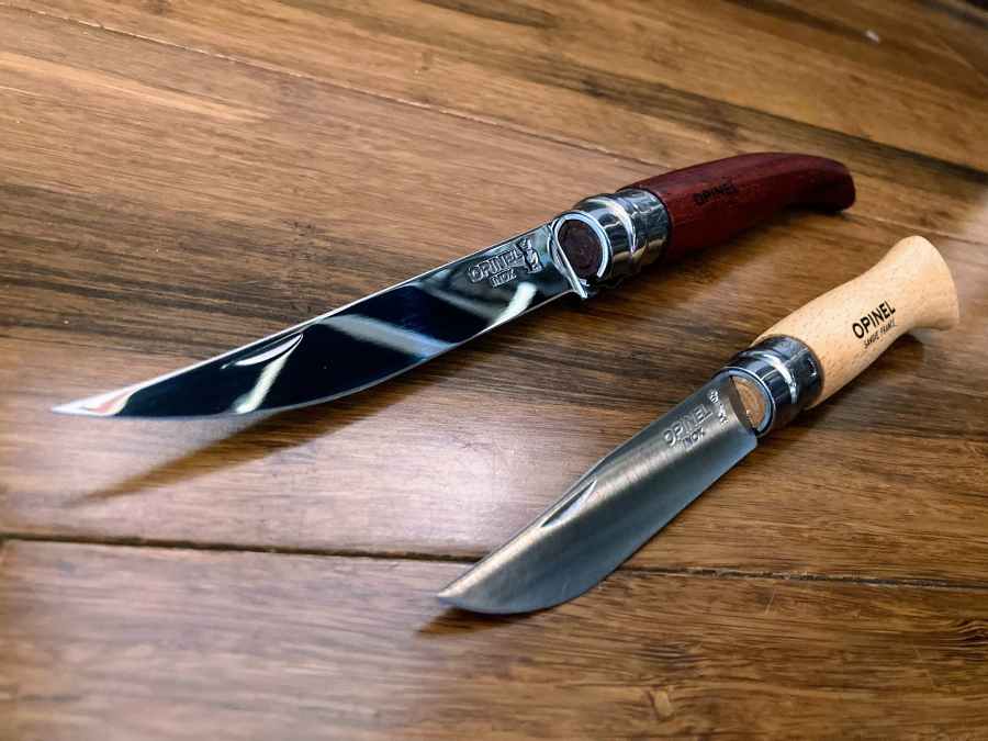 It’s simply a beautiful knife. Typical of Opinels, you can get these in various sizes, with numbers representing the length of the blade in centimeters. You can also get a few different handle wood options.