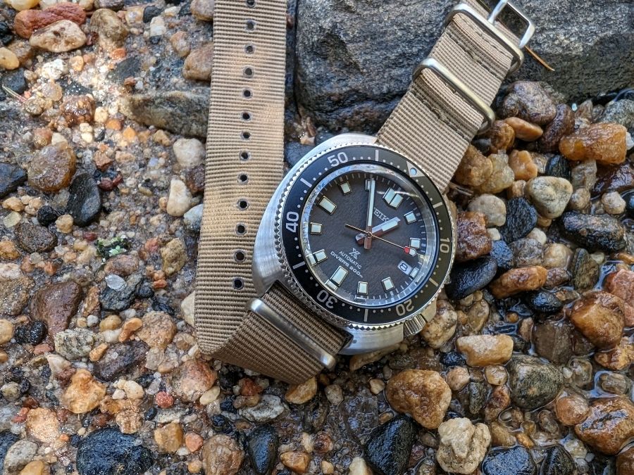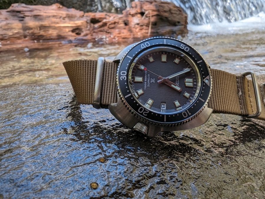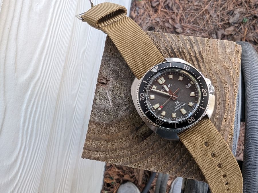 Out of the box the SPB237 comes on a thick Seichu woven strap. It looks cool but adds unnecessary bulk. On my wrist it felt tall and clumsy. I swapped it to a simple NATO and the watch immediately came alive. The thinner strap drops the profile and makes the watch feel like the rugged tool it was meant to be.