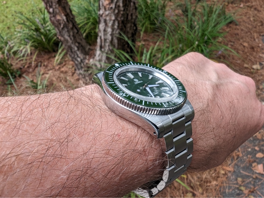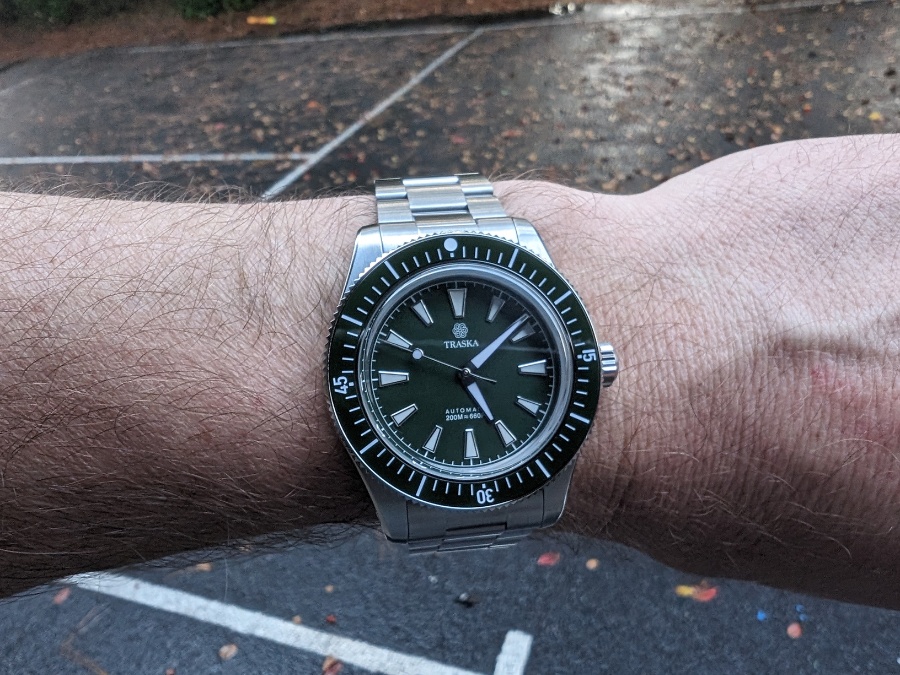 Here’s where Traska gets it right: this isn’t just a dive watch, it’s an everyday watch. At 40.5mm, it wears perfectly on my 7.25-inch wrist, with just enough wrist presence to feel like a tool watch but never overbearing.