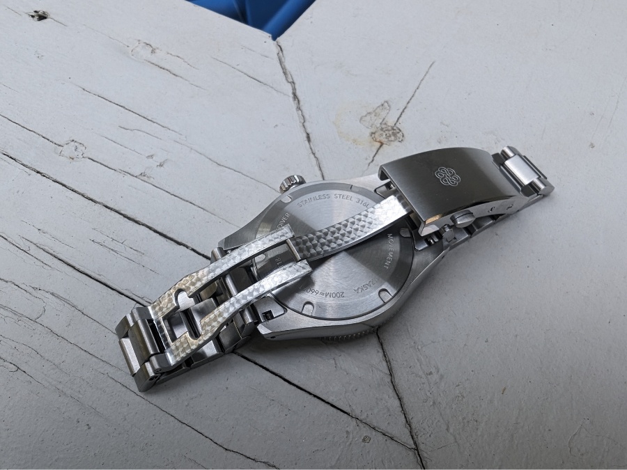 What jumps out here isn’t the raw specs, but the execution. The case feels svelte but substantial. The bezel has almost no back play and satisfying clicks. The hard coating keeps the watch looking new longer than just about anything else in this price bracket. And the clasp? It’s one of the smoothest tool-less micro-adjust systems I’ve used — no jank, no cheap feel, just easy adjustments on the fly.