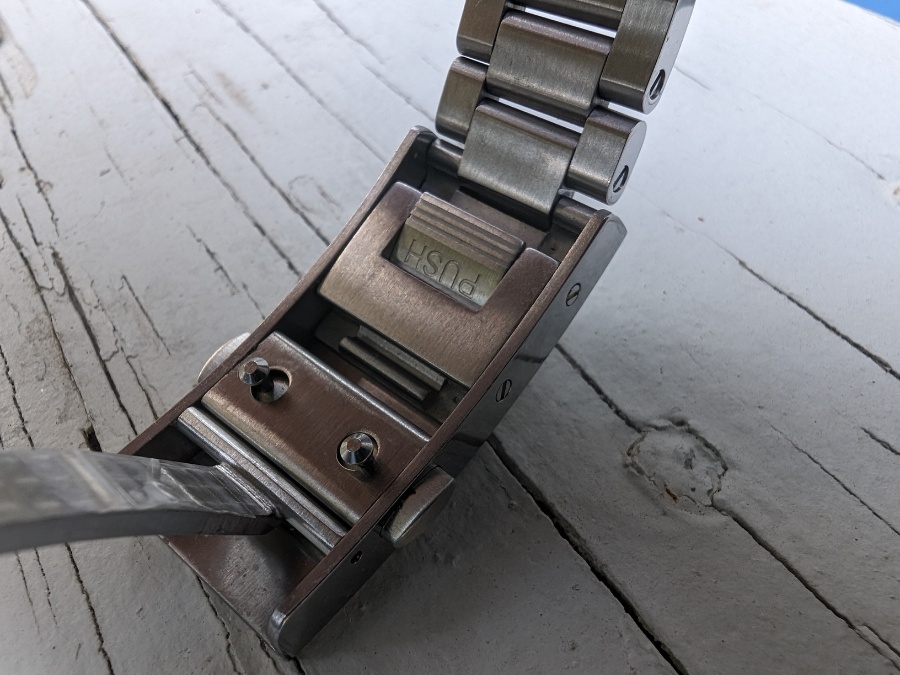 - Bracelet: Solid links with quick-adjust clasp, quick-release spring bars