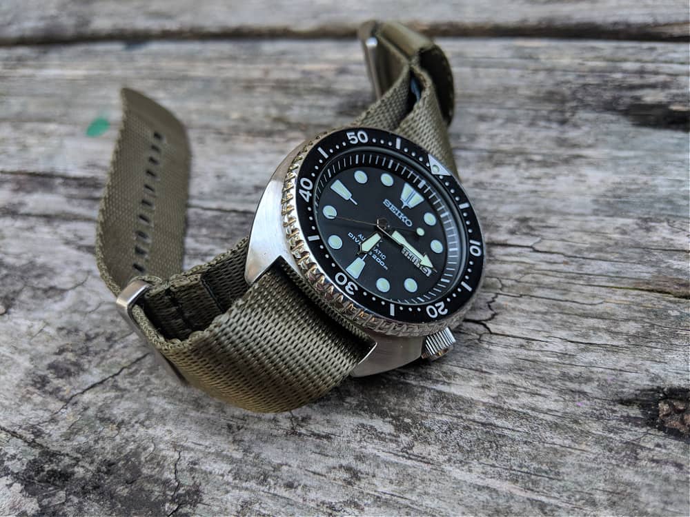 Inside is the dependable Seiko NH36A automatic movement, which hacks, hand winds, and is simple to service. It is not flashy, but it is known for reliability and longevity, which is exactly what you want in a watch designed for everyday use. The included khaki nylon strap with leather backing is comfortable enough, though the 20 millimeter lug width means this watch opens up endless strap possibilities. A leather, NATO, or canvas strap instantly changes the character of the piece.