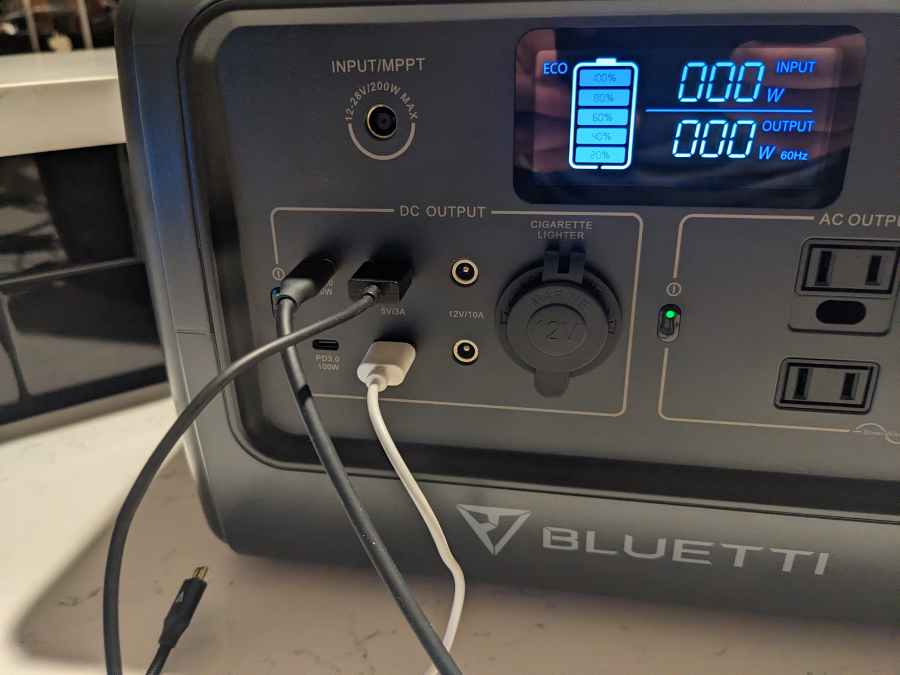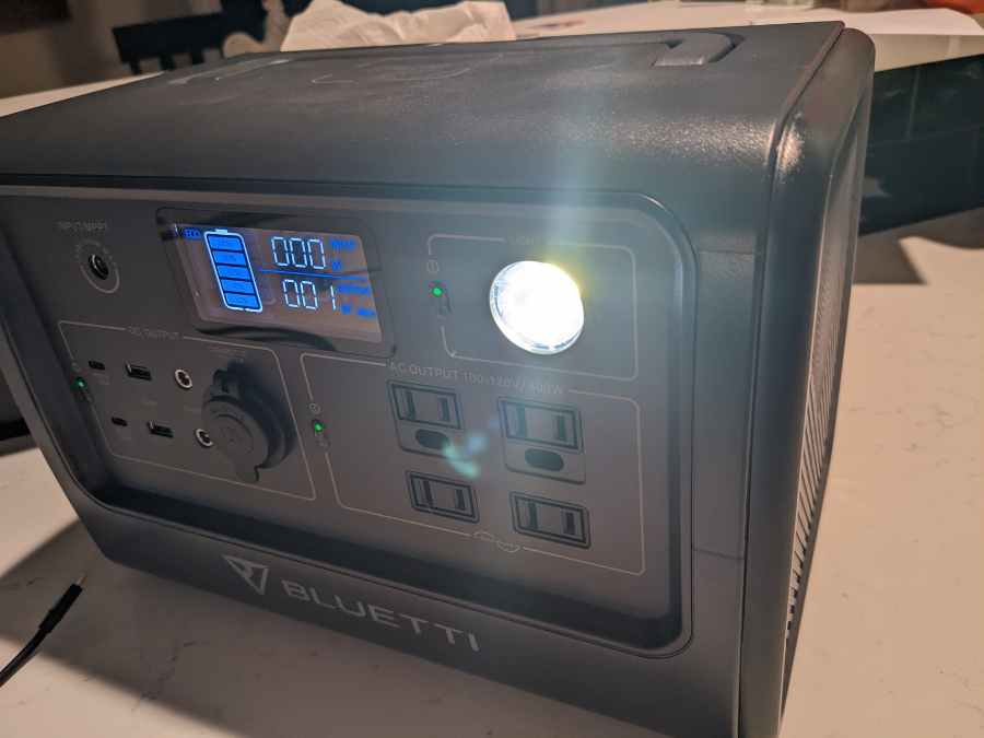 My one criticism of the display—and I must say this is the one area where Jackery power stations have the Bluetti beat—is that there isn’t a precise battery percentage. The battery indicator only shows how full it is in 20% increments, whereas Jackery display screens will give you the exact charge down to a fraction of a percent.