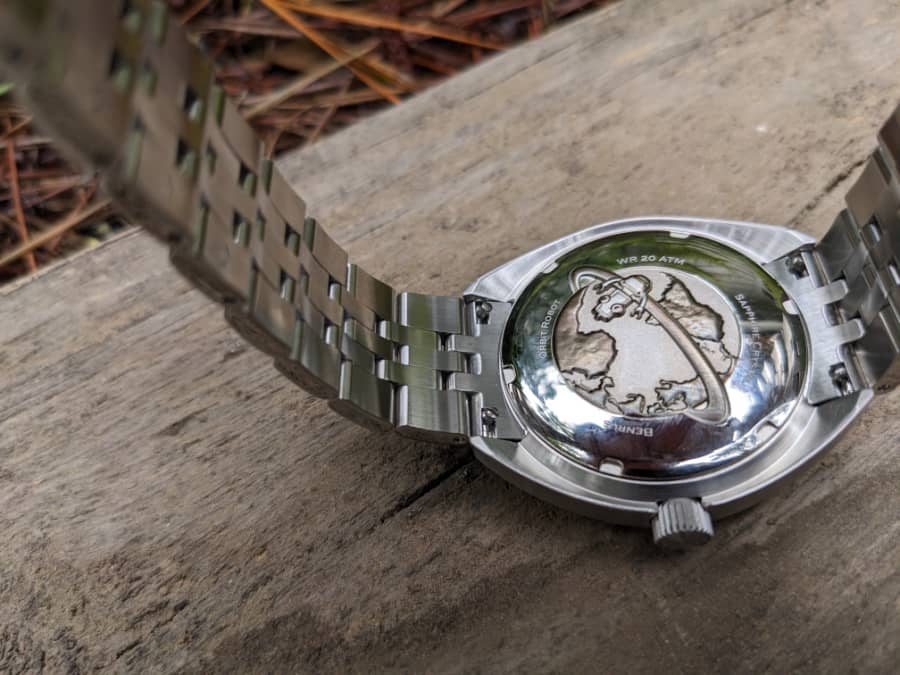 The BENRUS 1972 Orbit Robot timepiece is a beautiful fusion of retro aesthetics with modern functionality. It’s a watch for those who appreciate the nuanced design cues of an era gone by but expect the reliability of contemporary materials.