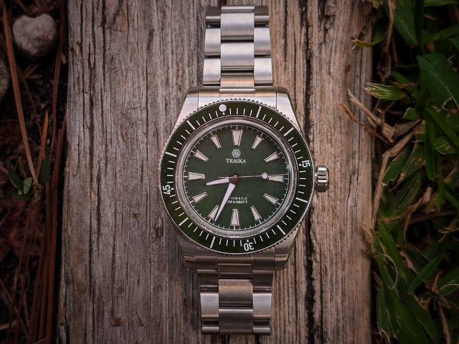 The Freediver gets all the essentials right. The case is compact, well finished, and wears effortlessly. Traska’s hardened steel treatment means this thing resists scratches like a much more expensive watch. The bezel action is tight, the screw down crown is smooth, and the bracelet is one of the best you’ll find for under a thousand bucks. The latest version even has on the fly microadjustment, which was one of the last features they needed to dial in.