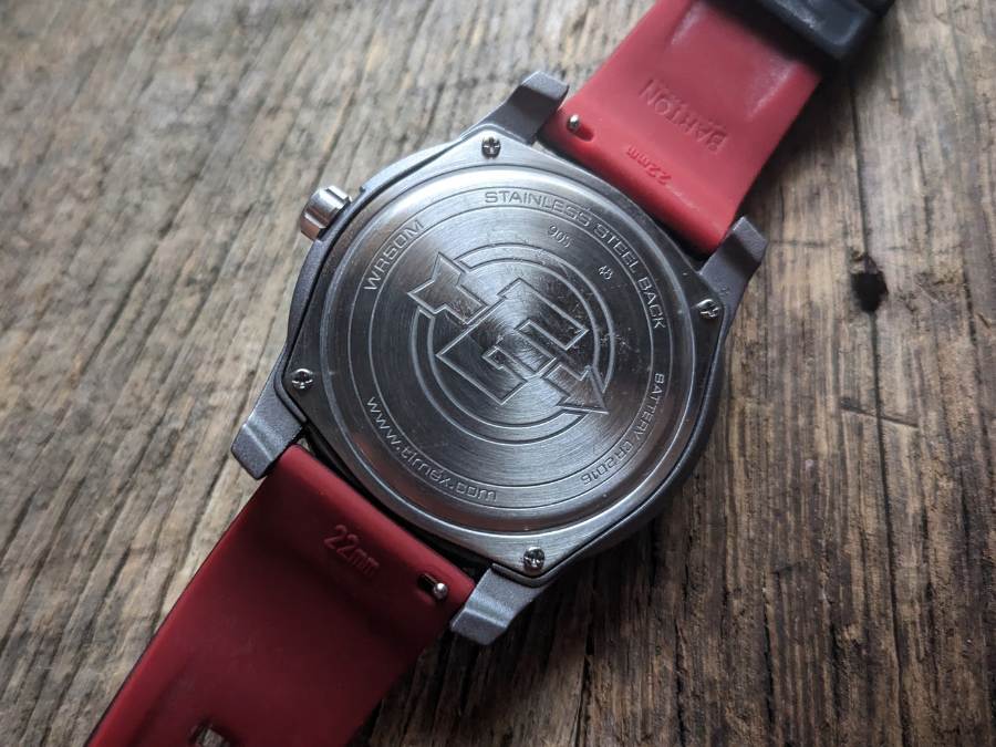 This is an analog watch with quartz movement, powered by a CR2016 battery. These things are known for running forever on their original battery, and it’s common to hear of folks wearing one of these for 5-plus years without having to change it. In any case, the back of the watch is held in place by four tiny screws, making the battery change process simple, if a bit delicate.