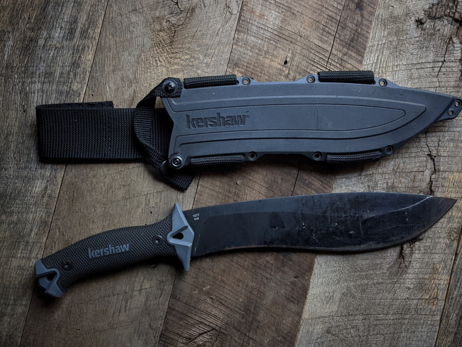 The first word that comes to mind when one holds the Kershaw Camp 10 isn’t “knife,” it’s “machete.” This is a blade designed not for delicate slicing and carving, but for breaking down firewood and hacking through underbrush.