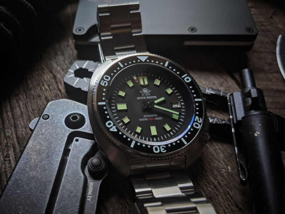 I have seen the ADDIESDIVE Steeldive on Amazon forever, and I am glad I gave it a shot. I actually think this guy will be a long term keeper….or at least until a Green Seiko SPB153J1 makes its way to my watchbox.