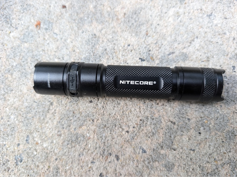 The beam is clean and pleasantly neutral-white with a defined hotspot and usable spill—great for driveway checks, garage tasks, and trail walks. Build quality is what you’d expect: anodized aluminum, o-ringed threads, springs at both ends to prevent flicker, IPX8-style water resistance to 2 m, and 1 m drop protection. Nitecore’s thermal regulation (ATR) steps output gracefully instead of hard-shutting off; in testing, turbo settled around ~125 °F at the head and kept running without drama.