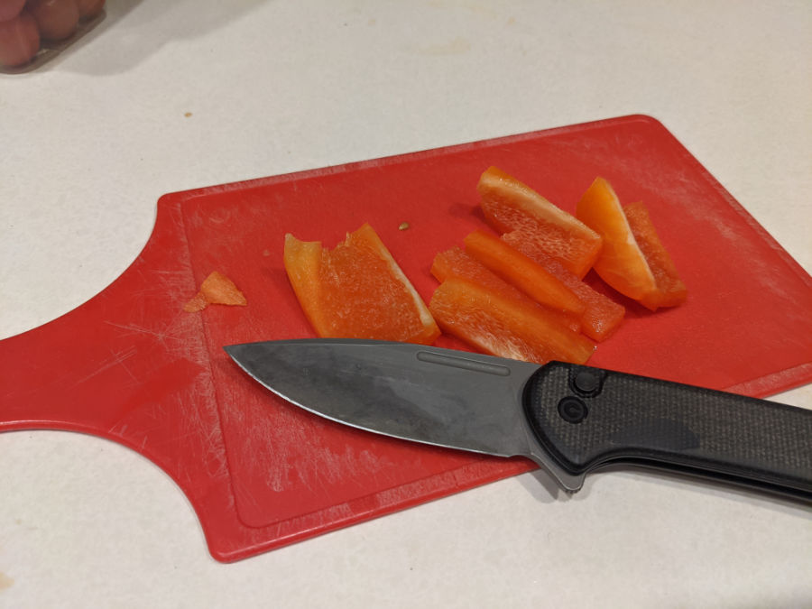 This is where I have a bone to pick with the knife. As I said in the beginning, this was my first Nitro-V steel, and it sucked. I have since picked up a Vosteed Night Shade, and it’s a night and day difference. The cutting ability of the Conspiriotor was not awful, just not great. This knife has more performance akin to something with S35VN blade steel.