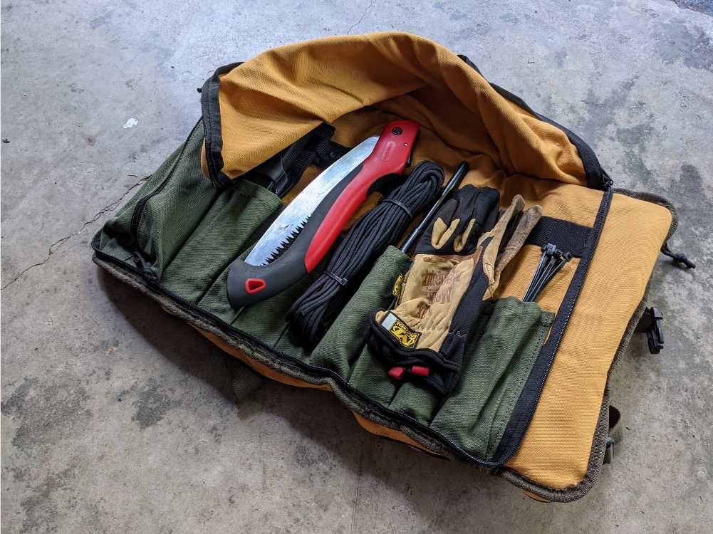 The Pack Mule Versatile Double-Sided Tool Roll Bag from Roaring Fire Gear has become one of my go-to tool rolls. It holds a ton of stuff, with handy storage for everything from mini-flashlights and pocket knives right up to machete-and-hatchet-sized tools.