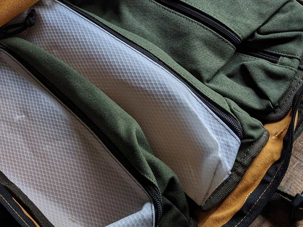 One side has 8 storage pockets, 11 elastic loops, and one large zippered pouch. The other side has four large, fully removable zippered pouches that attach to the pack via Velcro pads. Two of the pouches are made out of the same canvas as the pack itself, while the other two have opaque plastic walls so you can somewhat see inside.