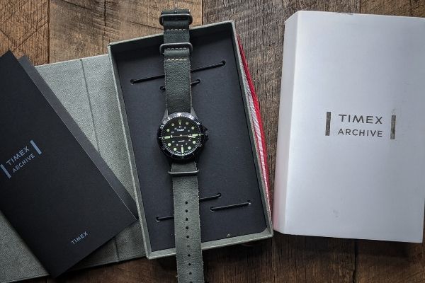 Unlike the red Timex box you may be used to, the Navi Harbor ships in a very nice custom cardboard case securely fastened to a lined backing by fabric elastic straps. For the money, the box was a nice touch and if you ever decide to give this watch as a gift, it’s great to know it will make a good first impression. The packaging definitely makes you feel like you bought something special.
