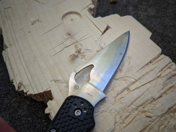 The steel used to make the blade is 8Cr13MoV stainless steel. In layman’s terms, it’s cheaper steel than the VG-10 stainless steel used for the blade of the Spyderco Endela. That’s not to say that it’s “bad” steel by any means, but it doesn’t have quite the edge retention or corrosion resistance.