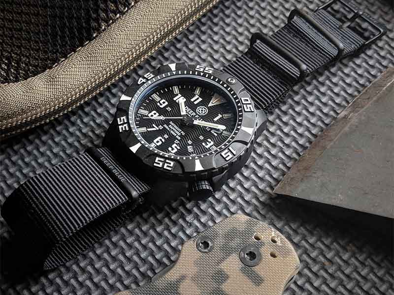 This is a watch you won’t realize you have on the wrist, unless of course it’s nighttime and you see the lume from a mile away. Deep Blue offers this watch with several strap options. It comes on a branded NATO strap, but one of the strap options is one of the coolest things out there. It’s a matching polycarbonate bracelet. It has articulating links and everything. Deep Blue has a quick video on their website about how to size it and you can get a good look at the bracelet.