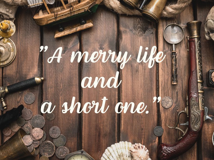 “A merry life and a short one” was the pirate motto, but these lives were much more often short than merry. Nor did they actually say “Argh”, but more often a simple “damn.” (Pirates did wear eyepatches when their eye was taken by an enemy blade, but also to maintain visual clarity when dropping from the bright main deck to the dark belowdecks.)