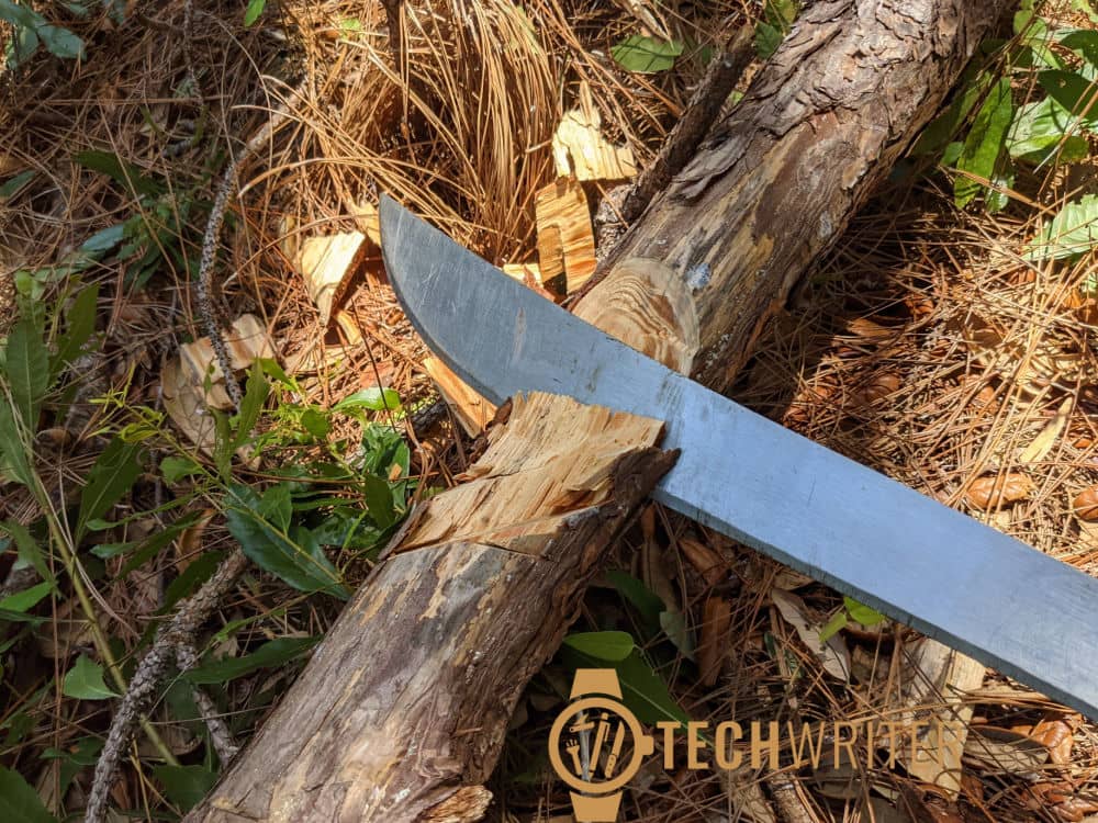 The SAE 1070 High Carbon steel used to make the blade is a pretty common grade of steel used for everything from garden tools to railroad rails. It’s mostly known for its excellent strength and wear resistance. It also has the ability to spring and flex just a bit, which is a good quality for a machete to have.