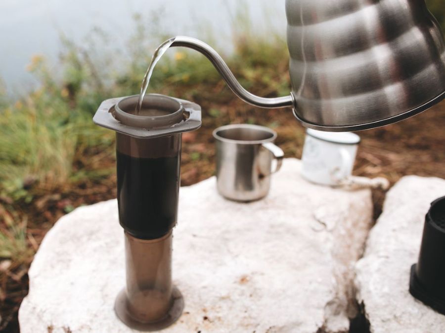 Still, they make great coffee. Using a fine mesh plunger to separate and trap the grounds, a French press is near the top of the pack when it comes to taste and quality. And there are a few models made specifically for backcountry use that go a long way toward eliminating bulk and inconvenience.