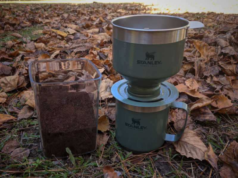 For car camping, the Stanley Pour Over Set is hard to beat. It’s rugged, durable, makes great coffee, and has a built-in filter so no paper filters are required. The mug that comes as part of the set is also insulated, so it keeps your coffee warm for a very long time. The only downside of the Stanley set is that it’s big, bulky, and a little on the heavy side. It is made of stainless steel after all, which is why I don’t take it on backpacking trips.