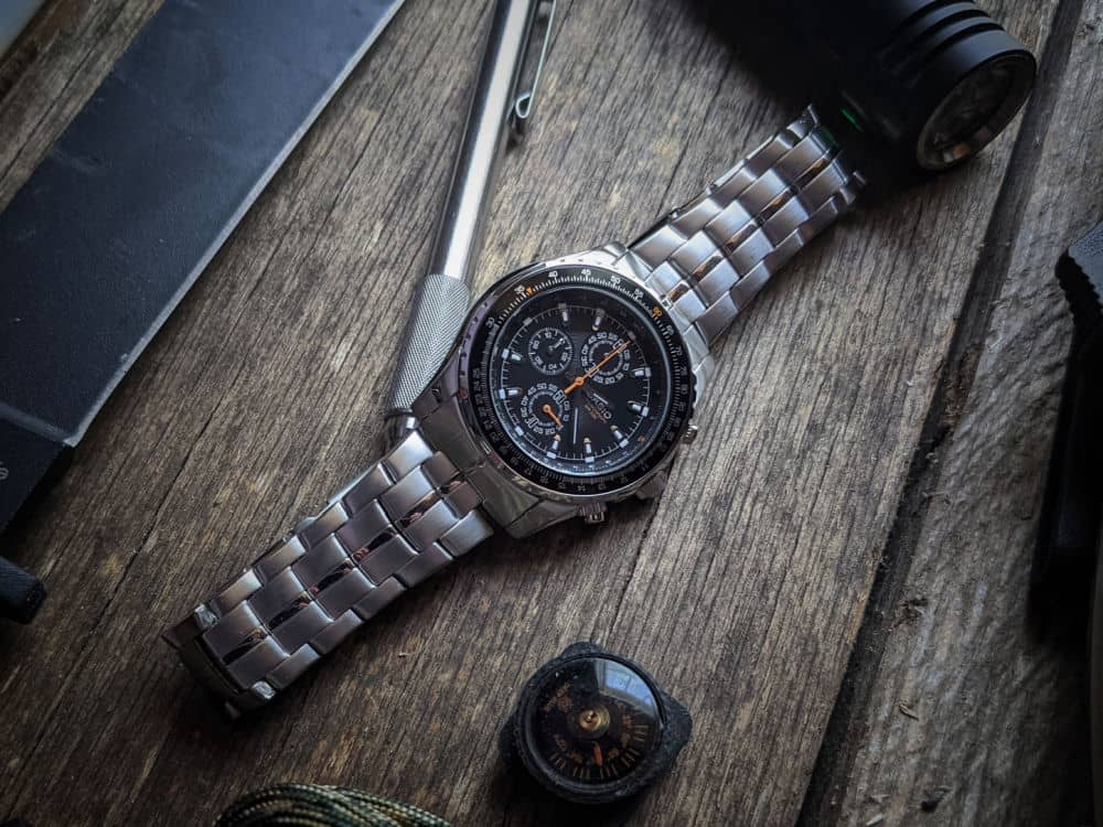 Casio Edifice EFV-550D-1AVUDF – Here’s another relatively inexpensive watch that delivers on many fronts. There are a bunch of sub-$100 Casio Chronographs, and any of them would be a decent choice. The bracelets are only mediocre, but that’s to be expected at this price point. They have a good build-quality and look amazing. Plus, you know the thing will last.