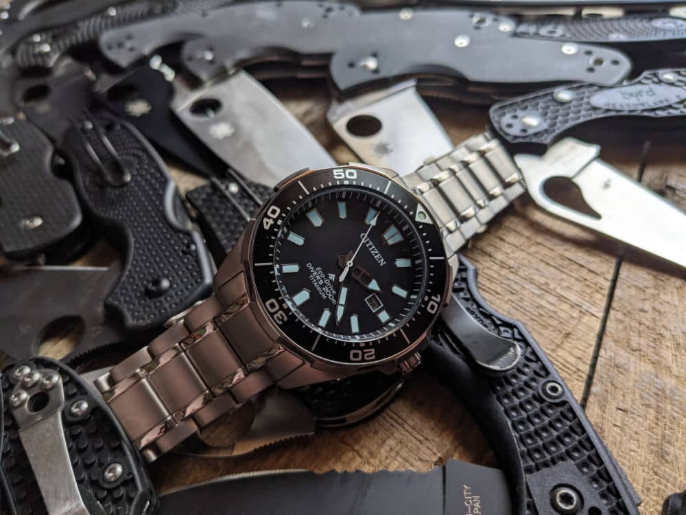 Citizen Promaster Titanium – I won’t spend too much time on this one. It’s amazing and with the titanium case you can forget you are wearing it. Like many of these quartz divers, the lume is only ho-hum.