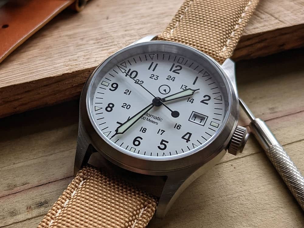 Vaer S5 Calendar Field – You really can’t go wrong with any watch from Vaer, quartz or automatic. The reason I like the watches so much is because of the water resistance and durability of their watches (touted on their website and verified in real life). That says something! It’s almost impossible to find a watch with so many features at this price point that has a screw down crown and a decent quartz movement. The lume is halfway decent also.