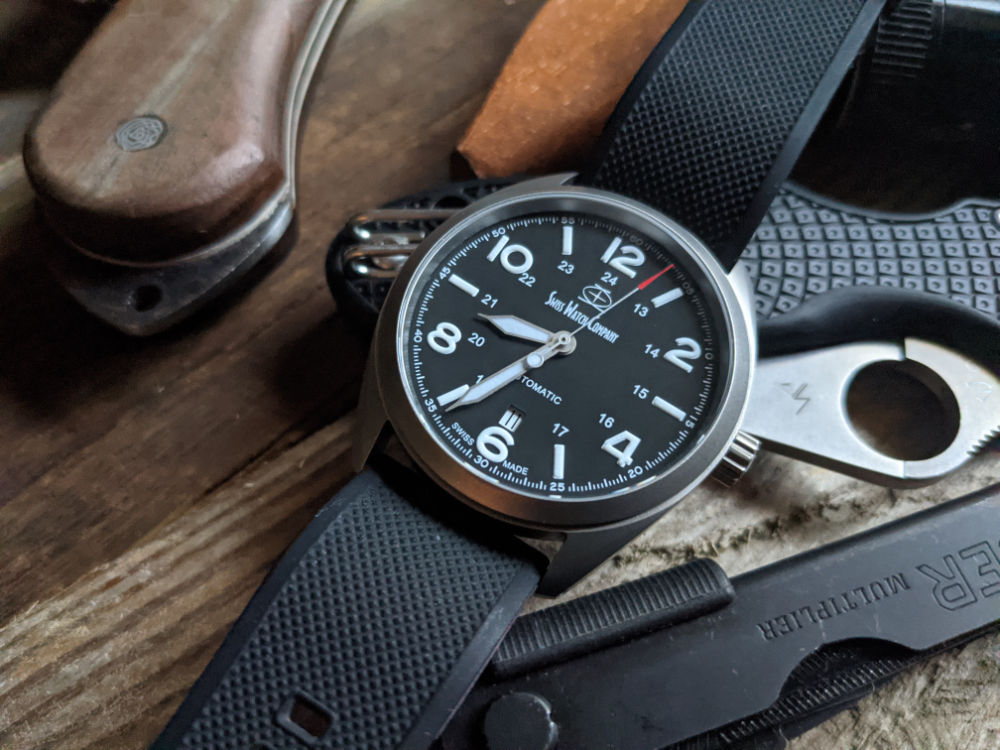 SWC Bunker – The best of all worlds here: titanium, great lume, good movement, and made by guys that love watches. After two years of wearing mine, I can attest to its dependability and how it holds up to wear and tear. Plus, it’s incredibly light so that you really don’t even know it’s on the wrist.