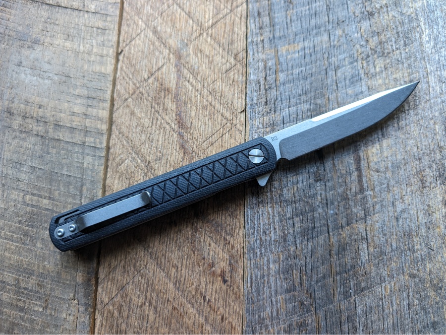 Where the knife wins points is in the overall profile. The lines are modern but understated, and the black G10 with subtle machining makes it feel sharper (in looks, not just edge) than the price might suggest. It’s the kind of knife that slips easily into office carry without raising eyebrows but still has enough blade to make short work of packages and light tasks.