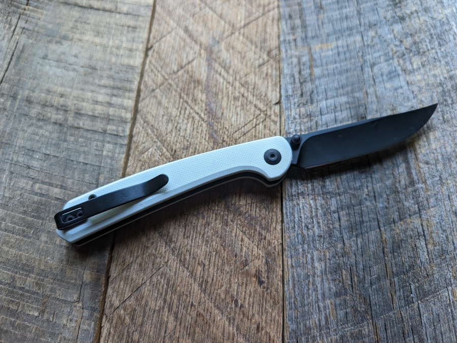 Where the Skelfin really shines is in hand and in use. The white G10 handles are slim and clean, with just enough contouring to keep it from feeling flat. The pocket clip isn’t recessed but is reversible, so lefties aren’t left out. At this price point, the little trade-offs are forgivable, especially when the overall execution is this solid.